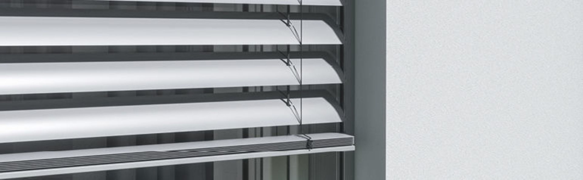 Moderner Sicht- und Sonnenschutz in besonders stabiler Ausführung, der sich je nach Bedarf an die Licht- und Sonnenverhältnisse anpassen oder automatisch steuern lässt.