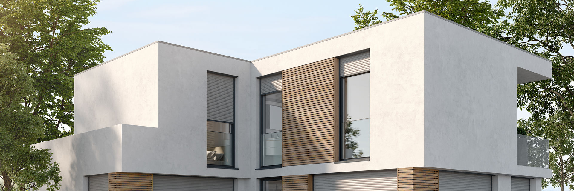 Glasscheibe hinter dem Rollladenbehang für einheitliche Außenansicht