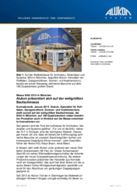 Konradsreuth, Januar 2015. Alukon, Spezialist für Rollläden, Garagenrolltore, Sonnen- und Insektenschutz, stellt zurzeit auf der weltgrößten Baufachmesse, der BAU in München, auf 168 Quadratmetern neben bewährten Produkten auch in Hinblick auf die Messe entwickelte Innovationen vor.