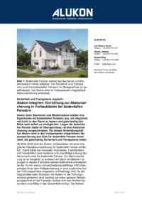 Immer mehr Bauherren und Modernisierer statten ihre Eigenheime mit bodentiefen Fenstern aus, um möglichst viel Licht in den Raum zu lassen und gleichzeitig den Blick nach außen zu ermöglichen. Liegen die bodentiefen Fenster dabei im Obergeschoss, ist eine Absturzsicherung vorgeschrieben. Für diesen Anwendungsfall hat Alukon eine in den Vorbaukasten integrierbare Absturzsicherung aus Glas für bodentiefe Fenster entwickelt, die gleichzeitig Sicherheit und Transparenz bietet.