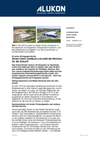 Heute beschäftigt Alukon an den beiden Standorten insgesamt mehr als 500 Mitarbeitende und beliefert Kunden in 37 Ländern. Das hochmoderne, mittelständische Industrieunternehmen zählt mit Produktionsflächen von gesamt 48.000 m² zu den größten Anbietern für Sonnenschutz in Europa. Dabei vertreibt Alukon eines der breitesten Produktprogramme rund um Rollladen, Sonnenschutz, Tore und Insektenschutz jeweils in allen Fertigungsstufen – von einzelnen Systemkomponenten bis hin zum fertigen Element bzw. Sonnenschutzsystem. So können Kunden je nach Anforderung effizient und maßgeschneidert beliefert werden – zum Beispiel auch mit spezifischen Sonderlösungen. Alukon bietet auch Architekten und Planern einen umfangreichen Service sowie praktische, digitale Tools für die Projektplanung. Geschäftsführer Klaus Braun blickt positiv in die Zukunft: „In den vergangenen Jahren haben wir uns eine gute Marktposition erarbeitet und fühlen uns bestens für die Zukunft aufgestellt. Jetzt liegt der Fokus darauf, unsere Position gemeinsam mit unseren Kunden weiter zu festigen und auszubauen“.