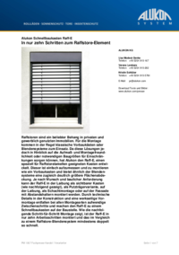 Raffstoren sind ein beliebter Behang in privaten und gewerblich genutzten Immobilien. Für die Montage kommen in der Regel klassische Vorbaukästen oder Blendensysteme zum Einsatz. Da diese Lösungen jedoch in Hinblick auf die Aufmaß- und Montagefreundlichkeit oder notwendigen Baugrößen für Einschränkungen sorgen können, hat Alukon den Raff-E, einen speziell für Raffstorelamellen geeigneten Kasten entwickelt. Dieser ist einfach aufzumessen und zu montieren wie ein Vorbaukasten und bietet ähnlich der Blendensysteme eine zugleich deutlich größere Flächenabdeckung. Je nach Wunsch und baulicher Anforderung kann der Raff-E in der Laibung als sichtbarer Kasten (wie nachfolgend gezeigt), als Putzträgervariante, auf der Laibung, als Schachtmontage oder auf der Fassade mit Abstandshaltern montiert werden. Durch technische Details in der Konstruktion und eine werkseitige Vormontage entfallen bei allen Montagearten aufwendige Zwischenschritte und machen den Raff-E zu einem Schnellbaukasten auf der Baustelle. Wie die nachfolgende Schritt-für-Schritt Montage zeigt, ist der Raff-E in nur zehn Arbeitsschritten montiert und das im Vergleich zu einem Raffstore-Blendensystem mindestens doppelt so schnell.