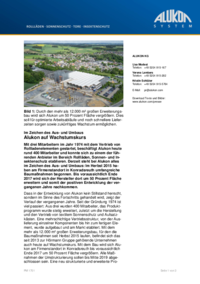 Mit drei Mitarbeitern im Jahr 1974 mit dem Vertrieb von Rollladenelementen gestartet, beschäftigt Alukon heute rund 400 Mitarbeiter und konnte sich zu einem der führenden Anbieter im Bereich Rollläden, Sonnen- und Insektenschutz etablieren. Derzeit steht bei Alukon alles im Zeichen des Aus- und Umbaus: Im Herbst 2015 haben am Firmenstandort in Konradsreuth umfangreiche Baumaßnahmen begonnen. Bis voraussichtlich Ende 2017 wird sich der Hersteller dort um 50 Prozent Fläche erweitern und somit der positiven Entwicklung der vergangenen Jahre nachkommen.
