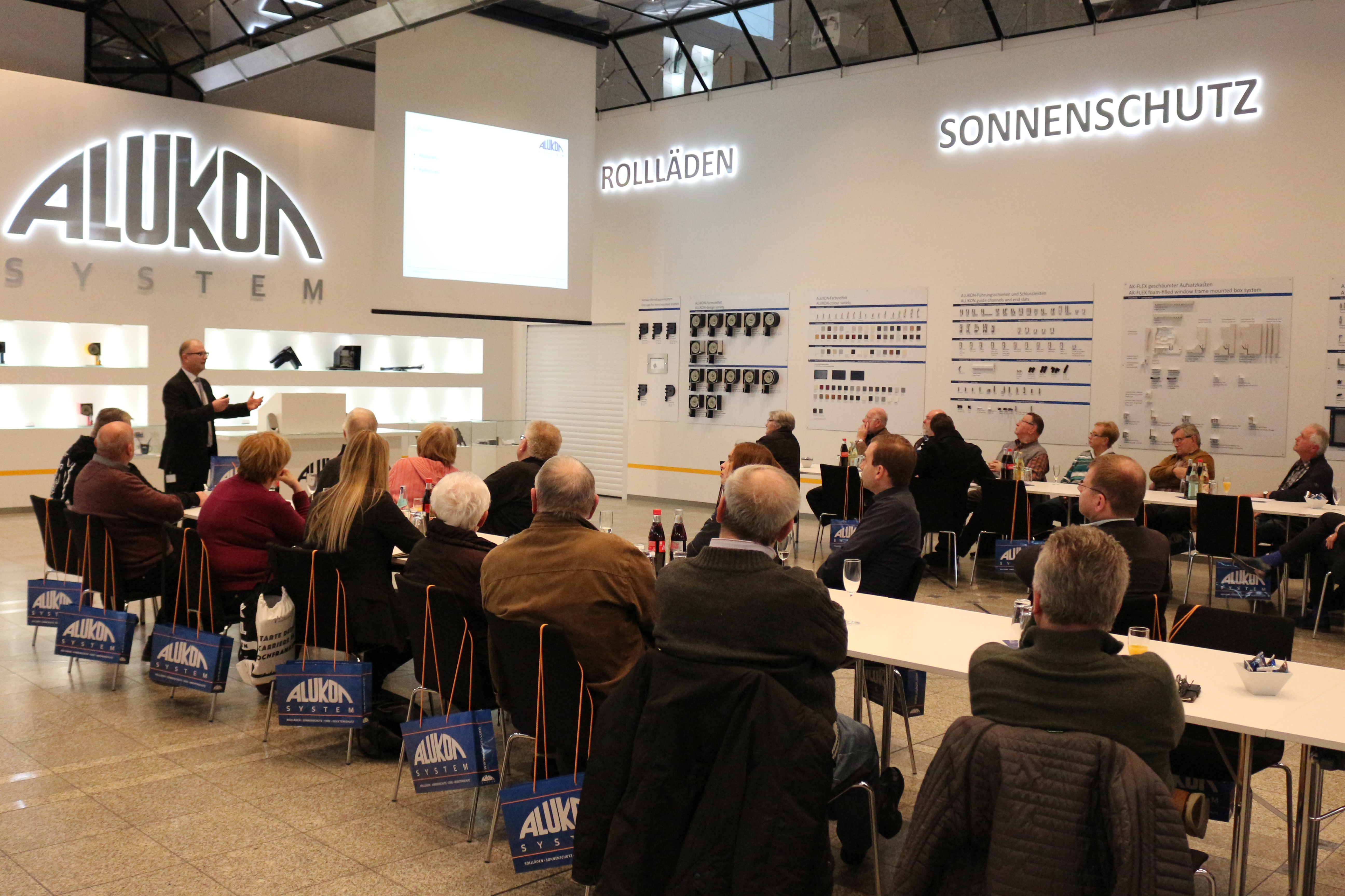 2015 startete das Projekt „Masterplan 2015“, der den Umbau des kompletten Unternehmens bis Ende 2019 auf noch flexiblere und schnellere Produktion beinhaltet. Davon konnten sich die Teilnehmer der Betriebsbesichtigung überzeugen. Neben dem hochmodernen Hochregal wurden die neue sowie bestehende Produktion gezeigt, in der im Drei-Schicht-System gearbeitet wird. Auch bei der Besichtigung herrschte reger Betrieb an den Maschinen. Dadurch konnten die Teilnehmer die einzelnen Schritte zur Herstellung von Rollladen, Sonnenschutzprodukten und Toren mit ansehen.